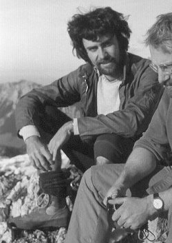When Kurt died, it really hit home. With Kurt I first went to the Karwendel, then to the Wetterstein, the Dolomites, the Kalkkoegel and the Wilde Kaiser. We almost got blown off the Sella pass in the Dolomites, when our little tent collapsed at night in the middle of a wild summer-thunderstorm. We went skiing together on his 30th birthday, and together we almost slid over slick, ice-covered rocks on top of the Luesener Villerspitz.